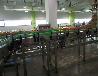 傳進牌鏈板流水線是在鏈式輸送機的兩側鏈條間加入板式構件,以達到輸送形態(tài)不規(guī)則的物品。在鏈板上加裝專用工裝夾具。并根據工控要求可作為裝配線,或直接采用塑鋼平頂鏈式作為輸送載體??蓪崿F彎道輸送。