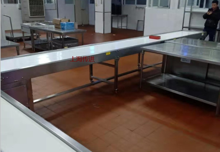 2. 傳進(jìn)配餐輸送機(jī)使用的輸送帶是食品級(jí)PU的傳送帶,符合國(guó)家衛(wèi)生部門的要求.有白色和蘭色兩種顏色可選;