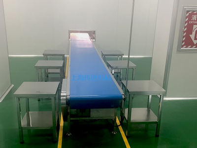 B. 傳進(jìn)配餐輸送機(jī)使用的輸送帶是食品級(jí)PU的傳送帶,符合國(guó)家衛(wèi)生部門(mén)的要求.有白色和蘭色兩種顏色可選;