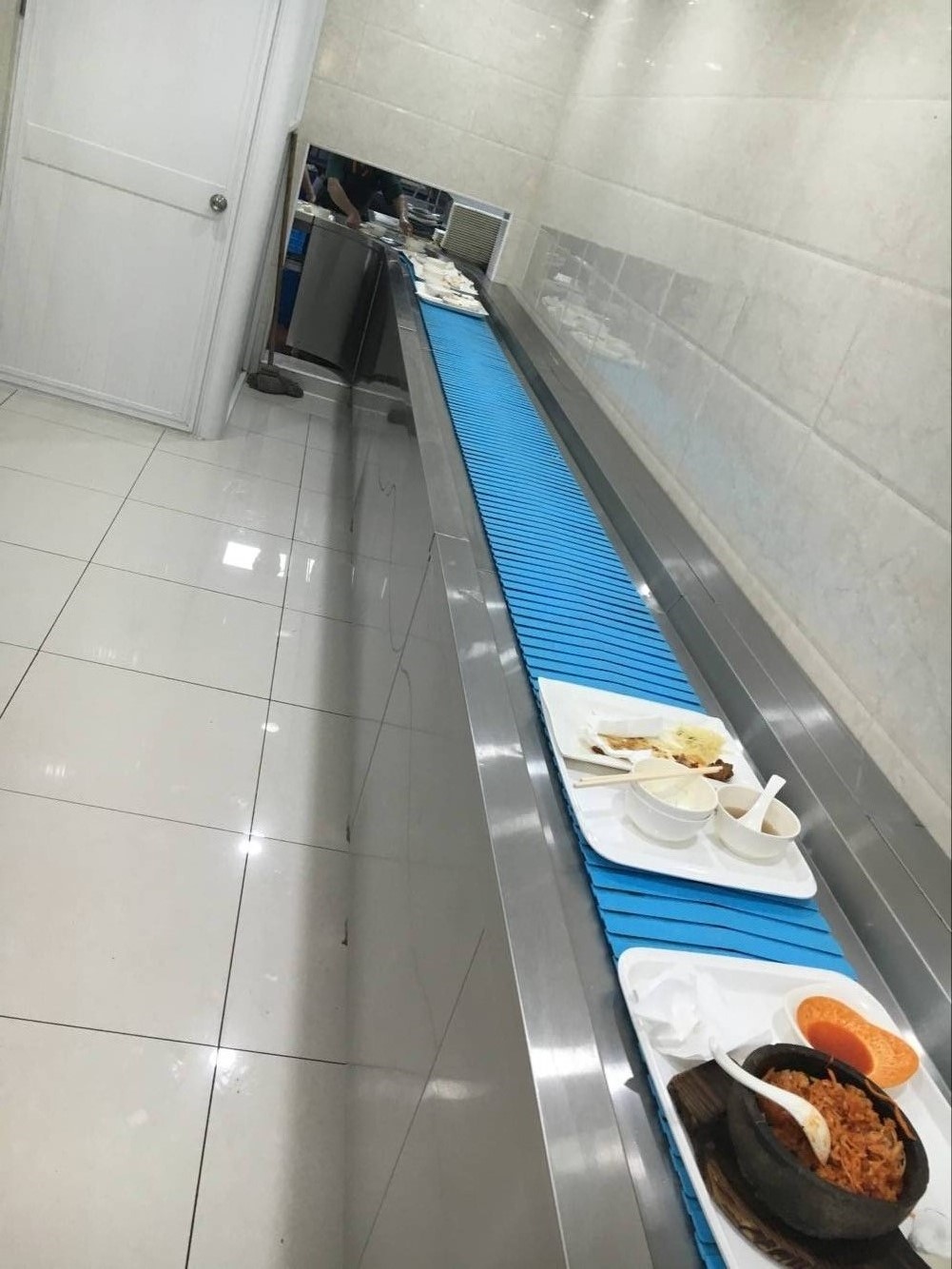 傳進餐盤輸送機巧妙的解決員工食堂餐具回收難題;