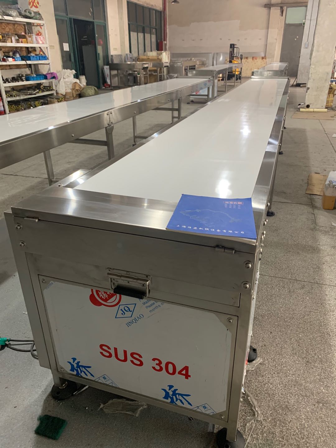 9、傳進(jìn)牌配餐輸送帶采用SUS304不銹鋼傳動輪、食品級皮帶, 輸送   帶具有防偏定位功能;