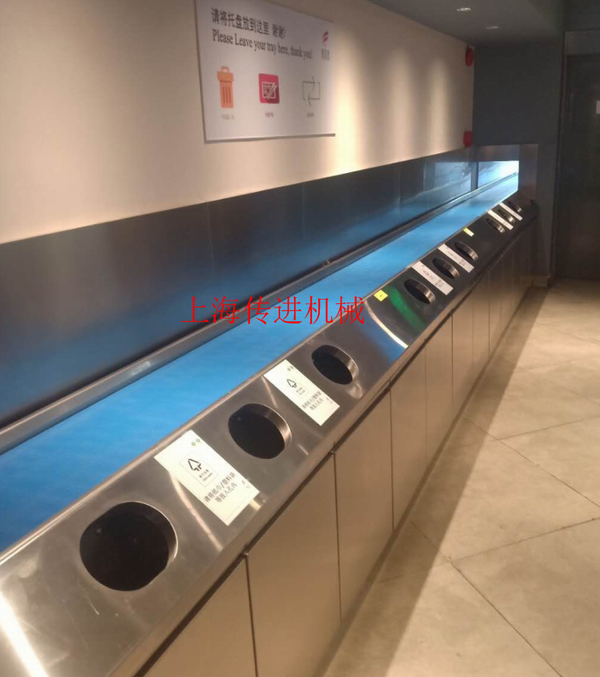 2.傳進(jìn)牌餐盤輸送機(jī)其速度可以調(diào)整,變頻器式調(diào)速,適合各種餐具的回收。